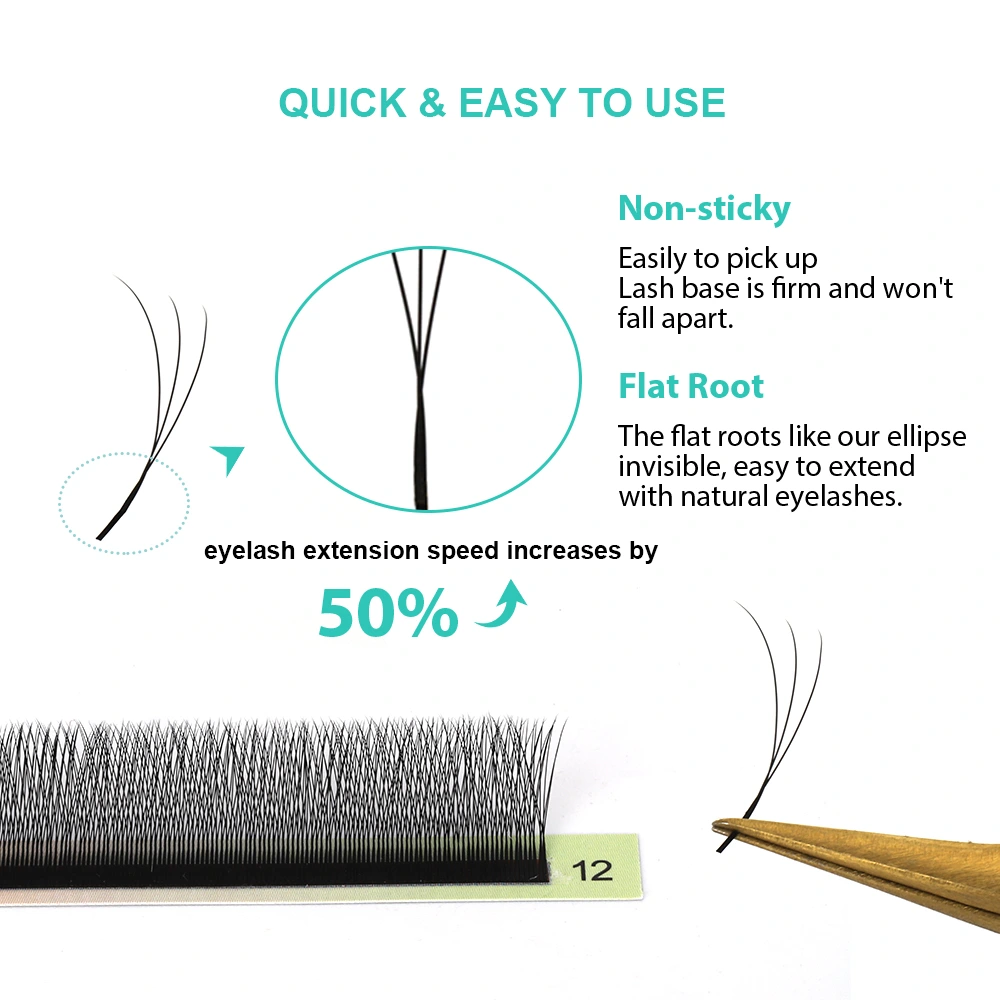 Овај производ комбинује јединствену уску базу вентилатора са прецизном структуром у облику слова И. Сваки кластер је ручно ткани са 4 трепавице користећи патентирану технологију, задржавајући класични обим трепавица у облику ИИ-а док се постижу невиђену лакоћу и удобност.