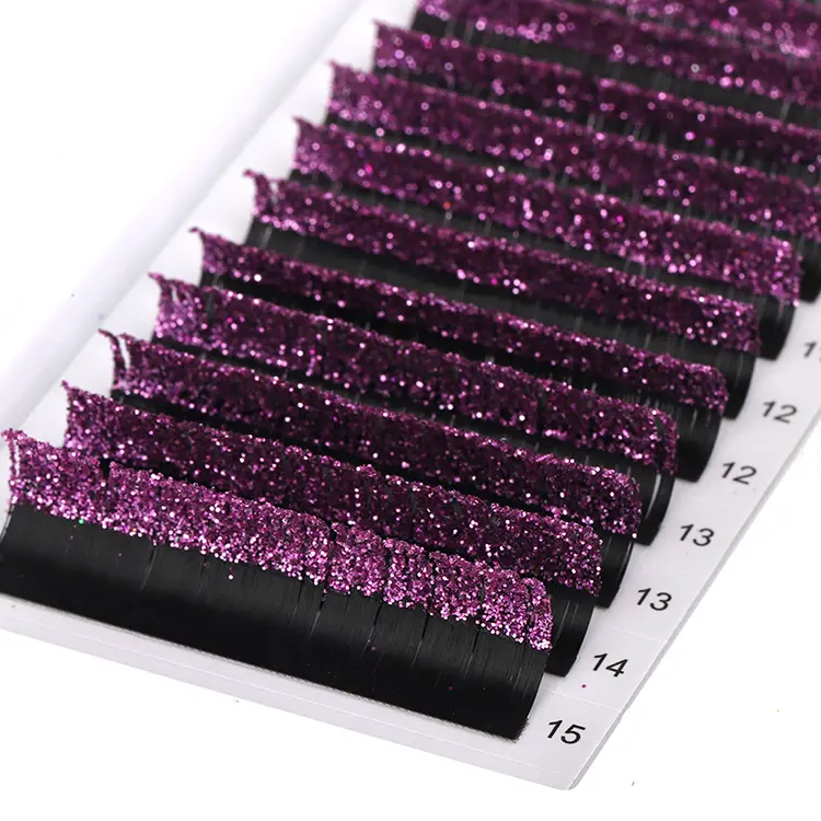 Проширење љубичасте Глиттер трепавице садржи сјај козметичке оцене високе густине, рефрактентно сањиво љубичасто светло под осветљењем. Било да је то улица у сунцу или изблиза на позорници, сигурно ће постати фокус.