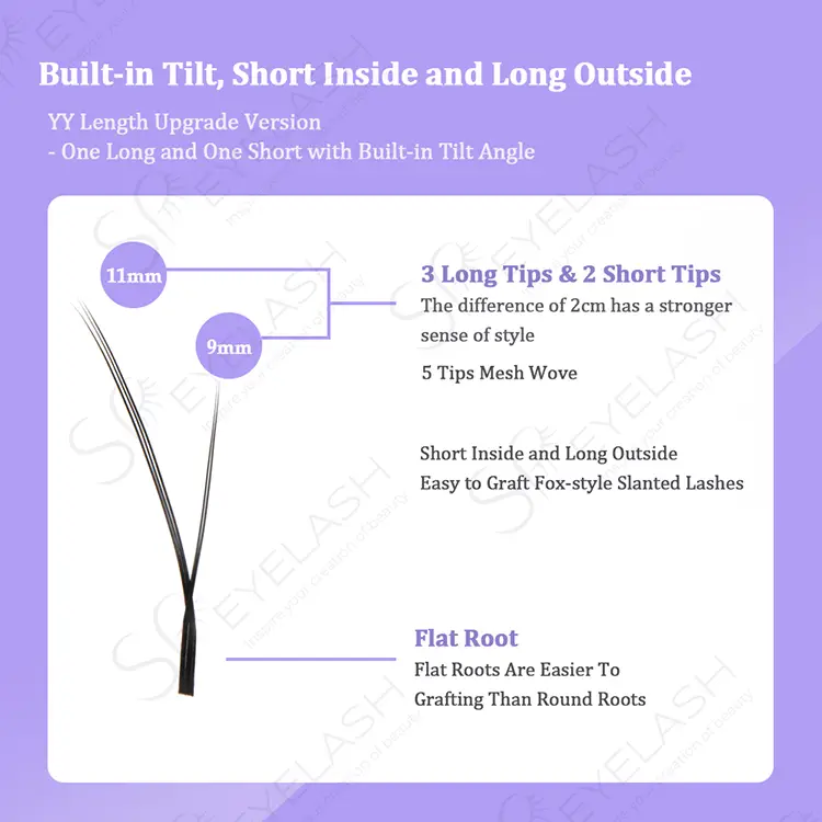 • Цурлинг: Ц-типе (природни), Д-тип (тродимензионални), ДД тип (густа) • Дебљина: 0,07 мм Биомиметичка финоћа • Спецификације: Једнократна дужина / мешовити паковање (као што је комбинација 9-14 мм)