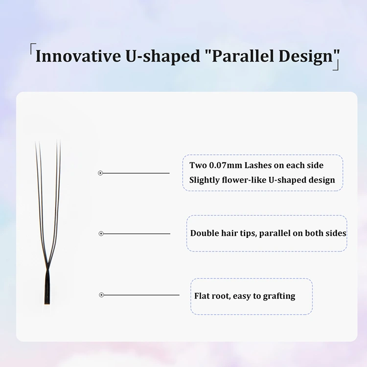 Двоструки шиљаст дизајн у облику слова У-а повећава лепљиве контактне тачке, побољшава чврстину и издржљивост и има више предности у поређењу са традиционалним трепавицама у облику слова И.